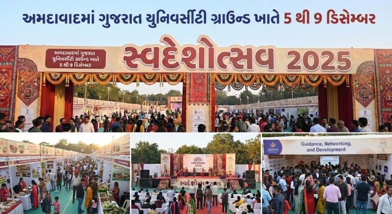 અમદાવાદમાં ગુજરાત યુનિવર્સીટી ગ્રાઉન્ડ ખાતે 5 થી 9 ડિસેમ્બર દરમિયાન "સ્વદેશોત્સવ 2025"નું આયોજન આ મહોત્સવનો મુખ્ય ધ્યેય સ્વદેશી ઉત્પાદનોને પ્રોત્સાહન આપવું, સ્થાનિક MSME અને સ્ટાર્ટઅપ...