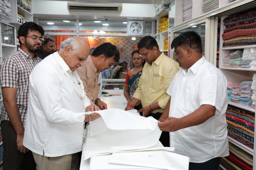 થલતેજમાં આવેલ ભારત ખાદી ગ્રામોદ્યોગ સંઘના યુનિટમાંથી મુખ્યમંત્રીએ ખાદીની ખરીદી કરી