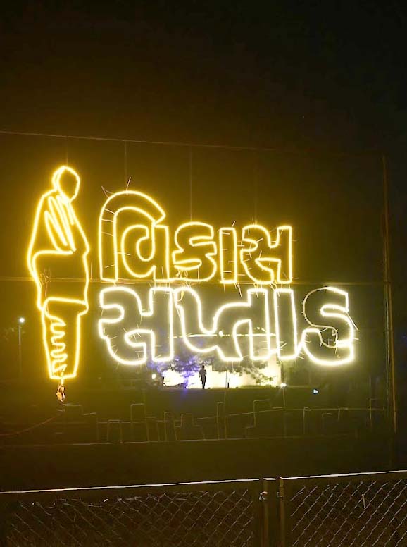 આ વર્ષે વિકાસ સપ્તાહ દરમિયાન વધુને વધુ નાગરિકો સહભાગી થાય તેવા હેતુ સાથે વહિવટી તંત્રના સંકલનમાં રહીને વિવિધલક્ષી કાર્યક્રમો રાજ્યભરમાં યોજાઈ રહ્યા છે. જે અંતર્ગત રાજ્યના વિવિધ મહત્વપૂર્ણ સ્થળોનું સુશોભન અને કલરફૂલ લાઈટીંગ કરવામાં આવ્યું છે.