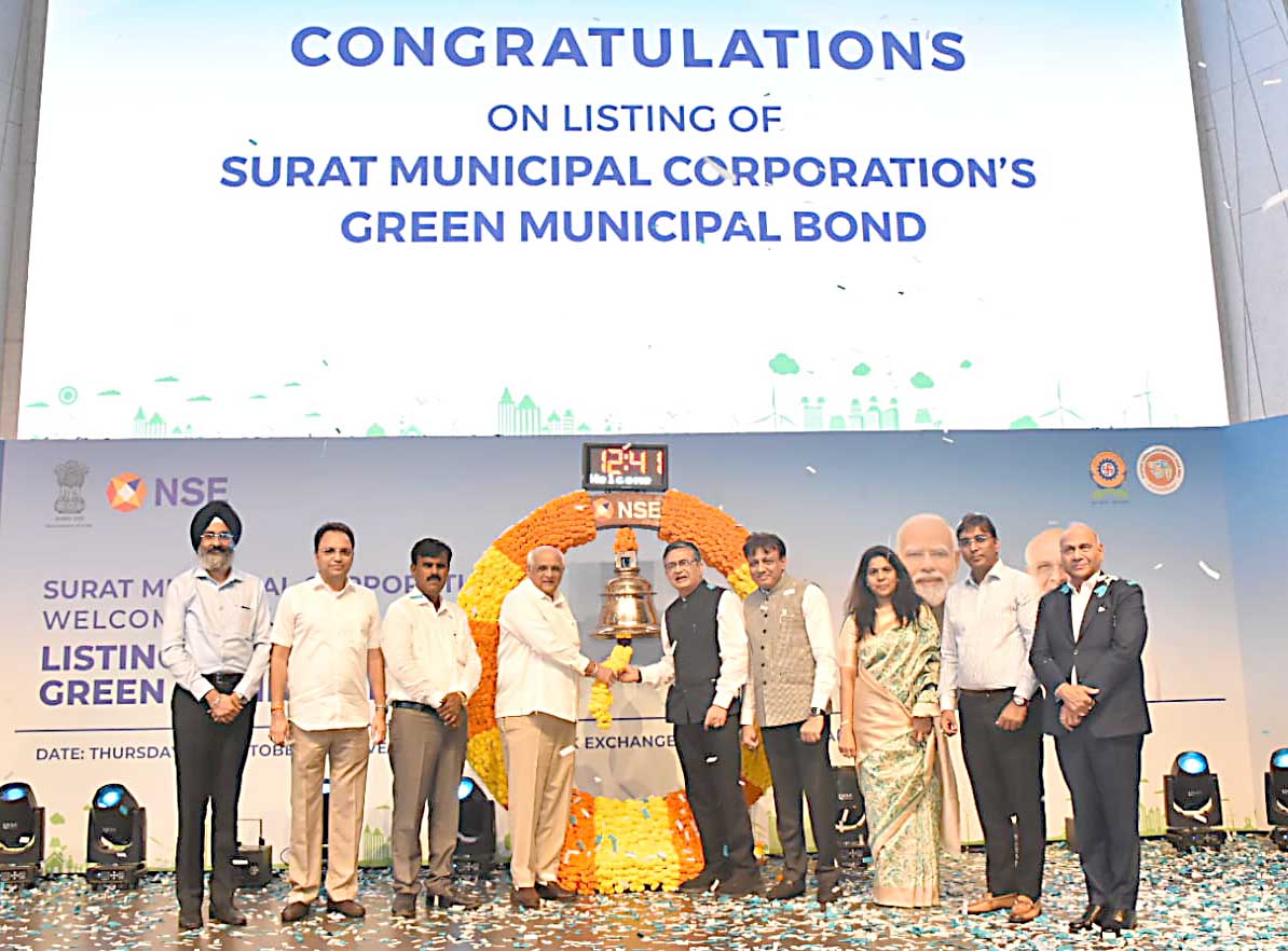 સુરત મ્યુ. કોર્પો.ના 200 કરોડના ગ્રીન બોન્ડનું મુંબઈ NSE ખાતે લિસ્ટીંગ થયું