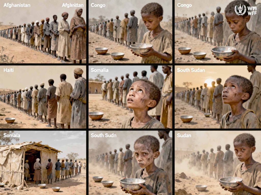 તેમાં અફઘાનિસ્તાન, કાંગો, હેતી, સોમાલિયા, દક્ષિણ સુદાન અને સુદાનનો સમાવેશ થાય છે. ડબ્લ્યુએફપીએ જણાવ્યું છે કે તેને ચાલુ વર્ષે ૪૦ ટકા ઓછું દાન મળવાની શક્યતા છે. જેના કારણે અંદાજિત બજેટ ૬.૪ અબજ ડોલર રહી જશે. ગયા વર્ષે તેને લગભગ ૧૦ અબજ ડોલર મળ્યા હતાં. વૈશ્વિક ભૂખમરો અગાઉથી જ રેકોર્ડ સ્તરે છે. ૩૧.૯ કરોડ લોકો ગંભીર ખાદ્ય અસુરક્ષાનો સામનો કરી રહ્યાં છે.