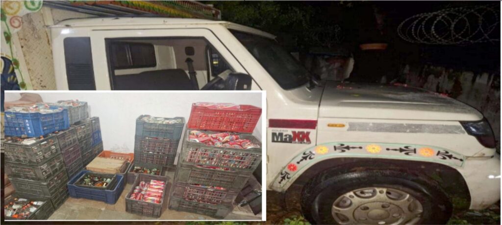 અને પોલીસે ત્યાં ઉભેલ ડાલા નંબર ઇત્ન-૩૦-ય્મ્-૧૨૩૫ની તલાસી હાથ ધરી હતી જેમાં પોલીસને સ્થાનિક કોઈ બુટલેગરે મંગાવતા ડાલામાં પ્લાસ્ટિકના કેરેટની આડમાં છુપાવી ત્યાં લાવવામાં આવેલ વિદેશી દારૂ નાની બોટલ નંગ ૧૩૯૨ બિયર ટીન નંગ ૬૪૫ મળી કુલ નંગ ૨૦૩૭ કિંમત રૂપિયા ૨,૭૪,૬૫૦ નો જથ્થો હાથ લાગ્યો હતો.