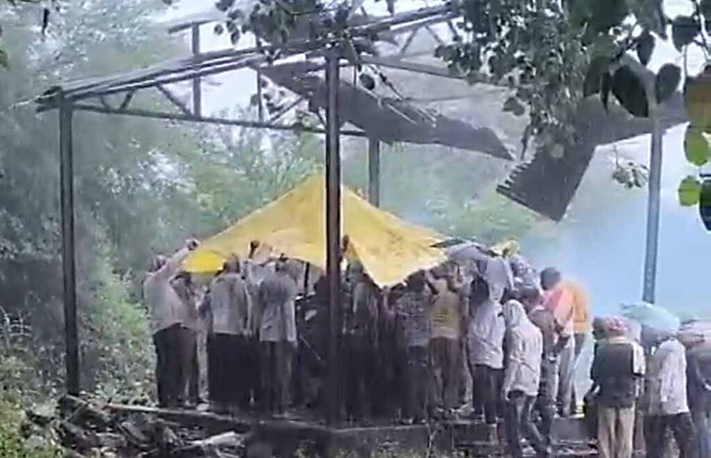 વરસાદમાં અગ્નિદાહ કરવા ગ્રામજનો મજબૂર