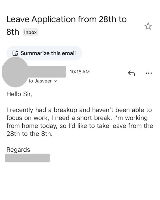 લો બોલો !! કર્મચારીએ બ્રેકઅપ થયું હોવાનું કારણ દર્શાવી રજા માગી