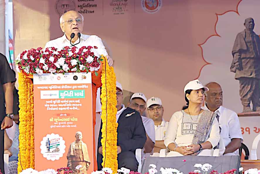 અમદાવાદ, ગુજરાતના મુખ્યમંત્રી ભૂપેન્દ્ર પટેલે શુક્રવારે અમદાવાદ મ્યુનિસિપલ કોર્પોરેશન (AMC) દ્વારા આયોજિત **’સરદાર@૧૫૦ એકતા માર્ચ’**ને લીલી ઝંડી આપી હતી. આ માર્ચ ભારતના લોહપુરુષ અને રાષ્ટ્રીય એકીકરણના શિલ્પી સરદાર વલ્લભભાઈ પટેલની ૧૫૦મી જન્મજયંતીની ઉજવણીના ભાગરૂપે યોજાઈ હતી.