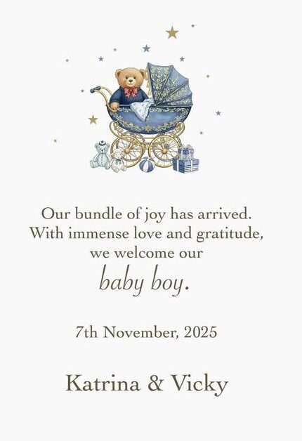 અમે બંને ખુશીથી હરખાઈ ગયા છીએ, કારણ કે તે અમારી ખુશી છે અને ભગવાનનો આભાર માનીએ છીએ કે તેમણે અમને જીવનમાં પુત્ર આપ્યો છે. ૭ નવેમ્બર ૨૦૨૫, કેટરિના અને વિકી.”આ સમાચાર મળતાની સાથે જ માત્ર ફેન્સ જ નહીં, પરંતુ ફિલ્મ ઇન્ડસ્ટ્રીના મિત્રો પણ કપલને શુભેચ્છાઓ આપી રહ્યા છે. મનીષ પાલે લખ્યું છે કે, “સમગ્ર પરિવાર અને ખાસ કરીને તમને બંનેને બાળક આવ્યા બદલ ખૂબ ખૂબ શુભેચ્છાઓ.”