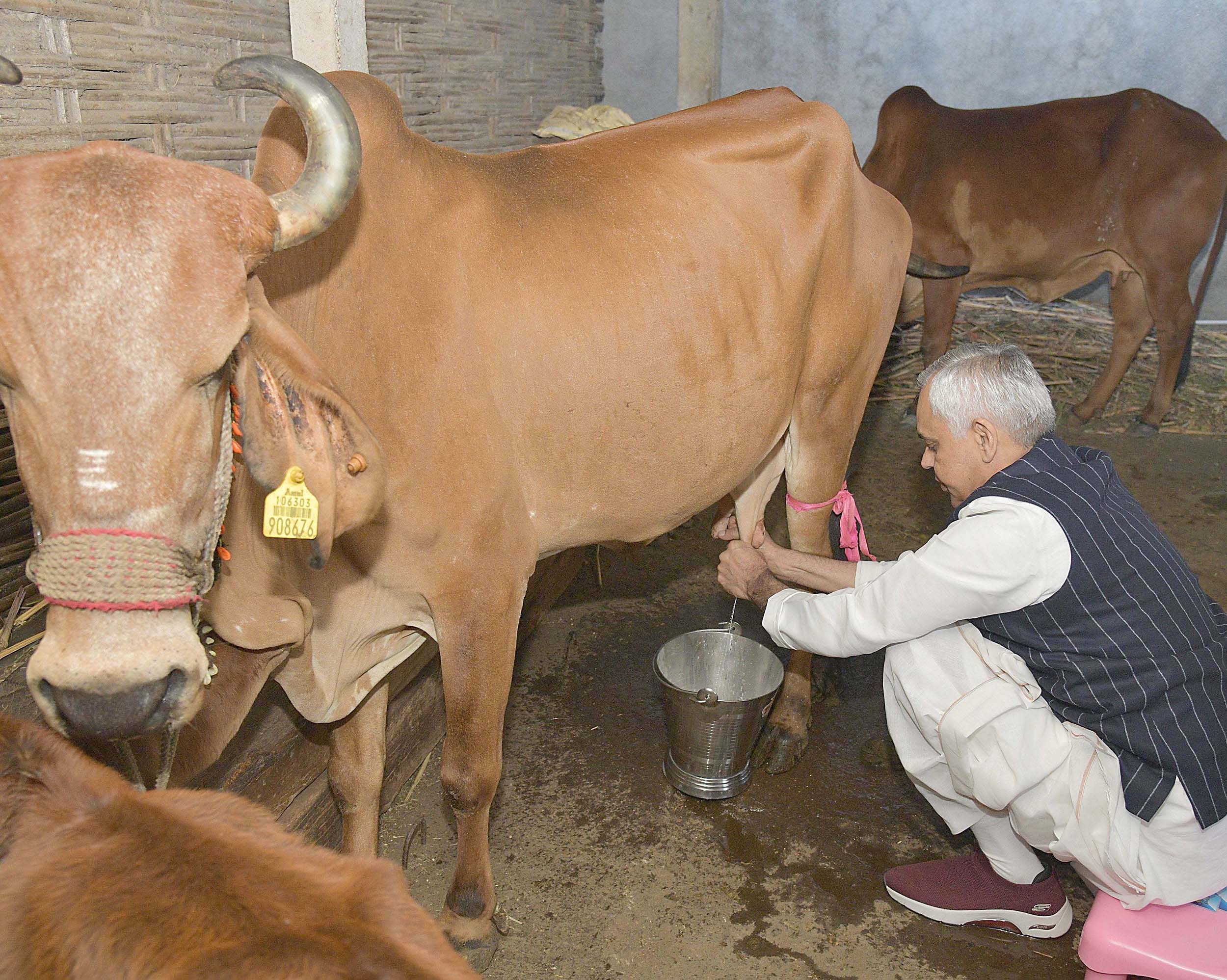 રાજ્યપાલશ્રીએ ગ્રામ્ય સંસ્કૃતિ, સાદગી અને લોકજીવન પ્રત્યેની પોતાની આત્મીયતા દર્શાવતા,વહેલી સવારે માણેકપુર ગામના ખેડૂત શ્રી રતિલાલભાઈ રેવજીભાઈ વસાવાના ઘરે પહોંચીને સ્વયં ગાય દોહી હતી.
