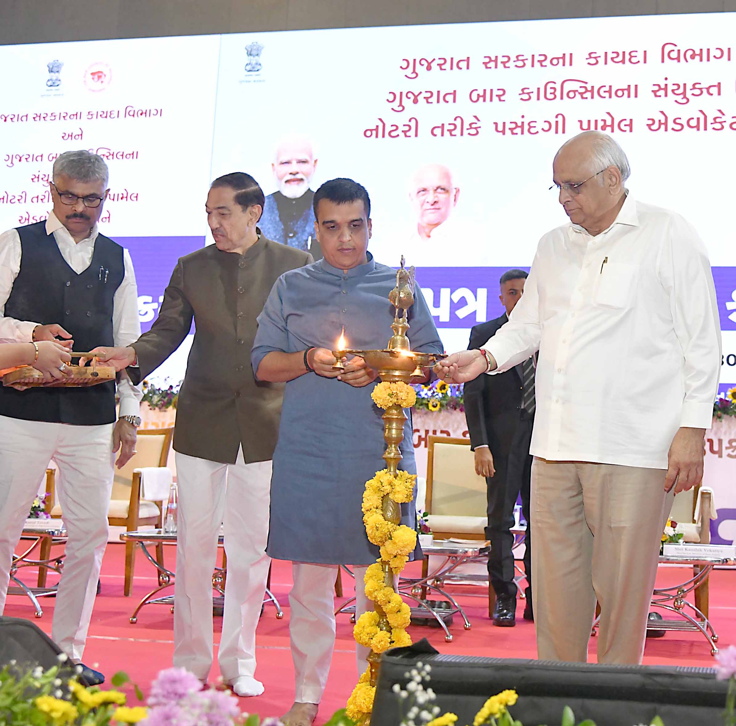 ગુજરાતના કાયદા જગત માટે આજનો દિવસ ઐતિહાસિક બની રહેશે. રાજ્યના કાયદા વિભાગ અને ગુજરાત બાર કાઉન્સિલના સંયુક્ત ઉપક્રમે ગાંધીનગર ખાતે આયોજિત કાર્યક્રમમાં રાજ્યના 1500થી વધુ એડવોકેટ્સને નોટરી તરીકેની નિમણૂંકના પ્રમાણપત્રો એનાયત કરવામાં આવ્યા.