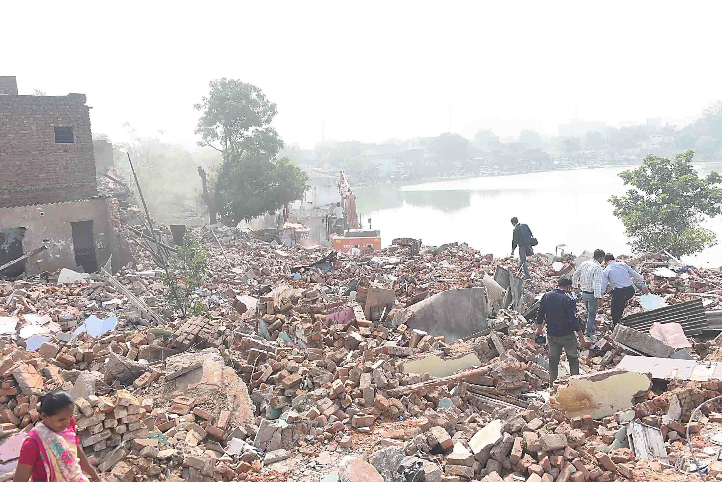 (પ્રતિનિધિ) અમદાવાદ, અમદાવાદ મ્યુનિ. કોર્પોરેશન દ્વારા ઈસનપુર વોર્ડના તળાવ ડેવલપમેન્ટ માટે તેની ફરતે આવેલા અંદાજે ૧૦૦૦ જેટલા દબાણ તોડી પાડવામાં આવ્યા છે. મ્યુનિ. એસ્ટેટ વિભાગ આ અગાઉ પણ દબાણો દુર કરવાની કાર્યવાહી થઈ હતી તે સમયે કેટલાક મિલકત ધારકોએ કોર્ટનો સહારો લીધો હતો પરંતુ વોટર બોડી હોવાથી કોર્ટે પણ દબાણ દુર કરવા આદેશ આપ્યો હતો જેના પગલે અહીં ૪૦ કરતા પણ વધુ વર્ષથી વસવાટ કરતા લોકોની મિલકતો તોડવામાં આવી છે.