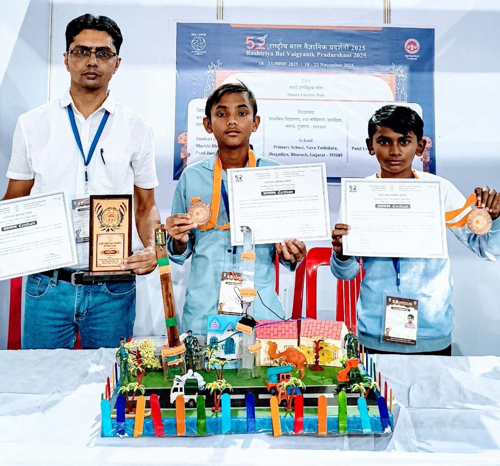 (પ્રતિનિધિ) ભરૂચ, એમ.પીના ભોપાલમાં ૫૨ મો રાષ્ટ્રીય બાળ વૈજ્ઞાનિક પ્રદર્શન ૨૦૨૫ તારીખ ૧૮/૧૧/૨૦૨૫ થી ૨૩/૧૧/૨૦૨૫ દરમ્યાન યોજાયો હતો.જેમાં સમગ્ર ભારત માંથી બાળ વૈજ્ઞાનિકો પોતાની કૃતિ લઈને આવ્યા હતા.ગુજરાત માંથી કુલ ૮ કૃતિ પસંદ થઈ હતી.