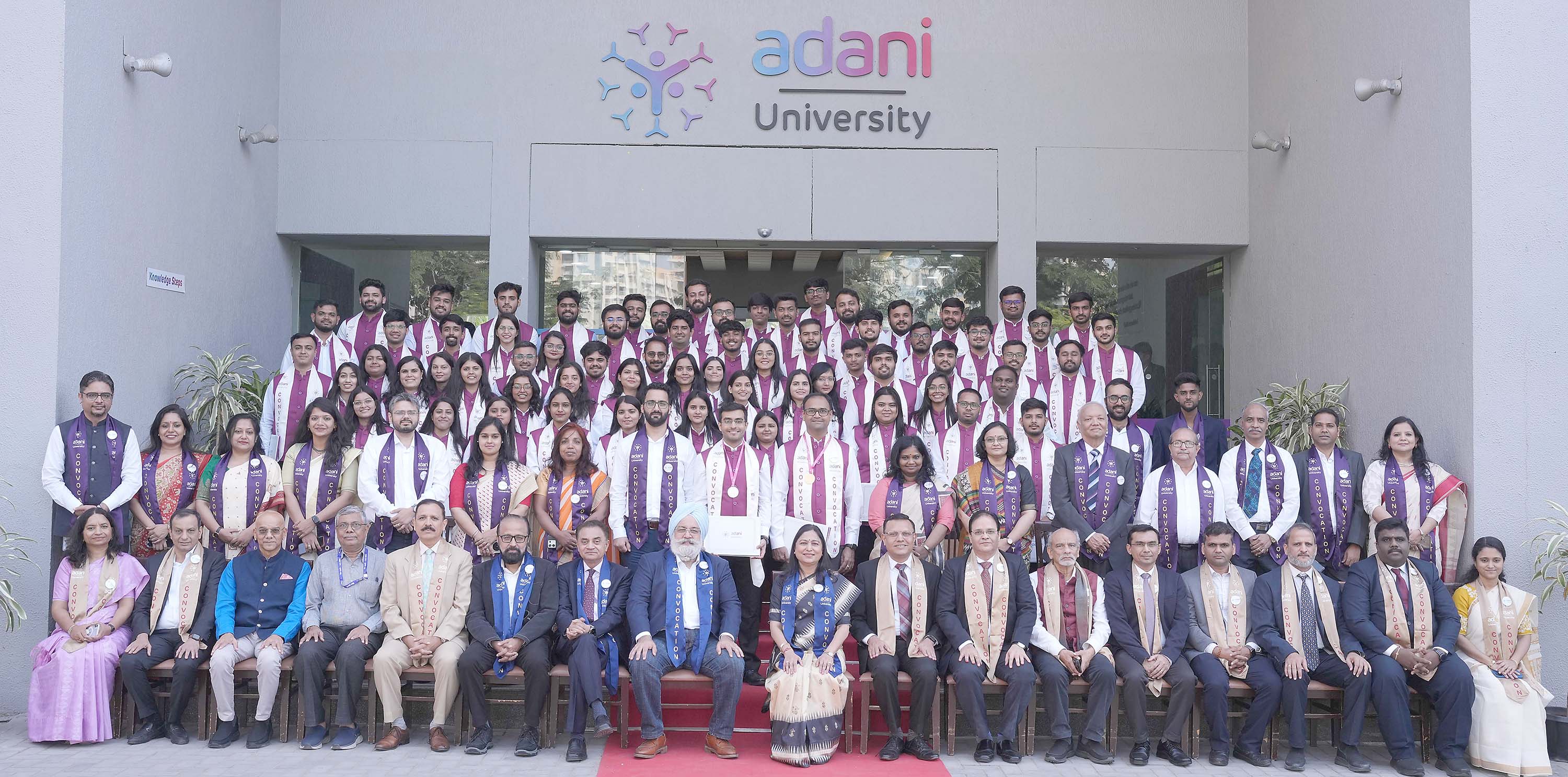 Degrees were awarded to 79 MBA (Infrastructure Management) graduates and 8 M.Tech (Construction Engineering & Management) graduates. The ceremony was presided over by Dr Priti G Adani, President of Adani University and Chairperson of the Adani Foundation.