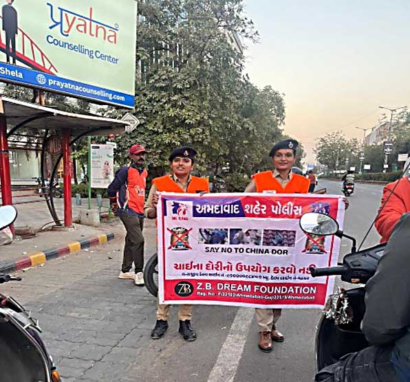 ચાઈનીઝ દોરીના જોખમો અંગે લોકોને જાગૃત કરવા અમદાવાદ શહેર પોલીસ દ્વારા ઉત્તરાયણ-2026ના સંદર્ભમાં વિવિધ જગ્યાએ જનજાગૃતિ કાર્યક્રમોનું પણ આયોજન કરવામાં આવ્યું છે. જેમાં પોલીસ અધિકારીઓ અને કર્મચારીઓએ વિવિધ સ્થળોએ, શાળાઓમાં વિદ્યાર્થીઓ સાથે અને જાહેર જનતા સાથે બેનરો અને પોસ્ટરો દ્વારા સંવાદ કરી તેમને ચાઈનીઝ દોરીથી થતાં નુકસાન અંગે જાગૃત કર્યા હતા,