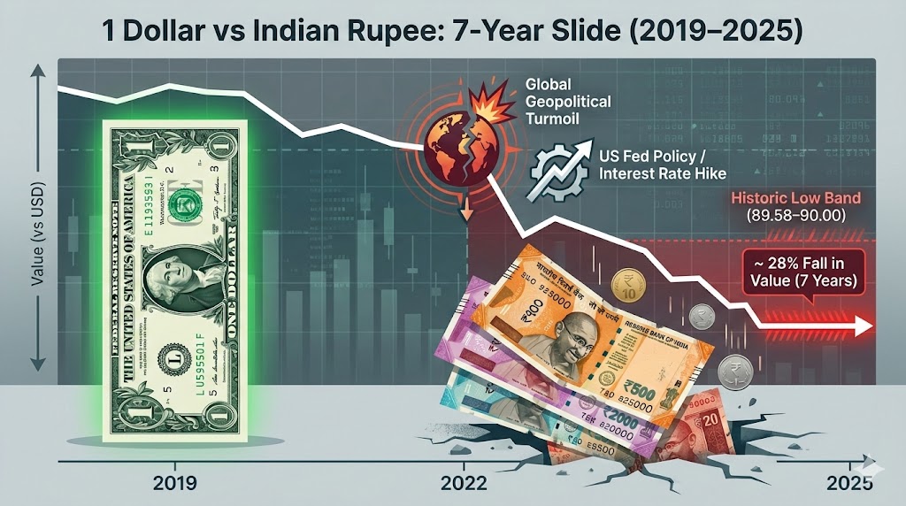 • ૨૦૨૫માં રૂપિયામાં ૬% જેટલો ઘટાડો નોંધાયો છે.