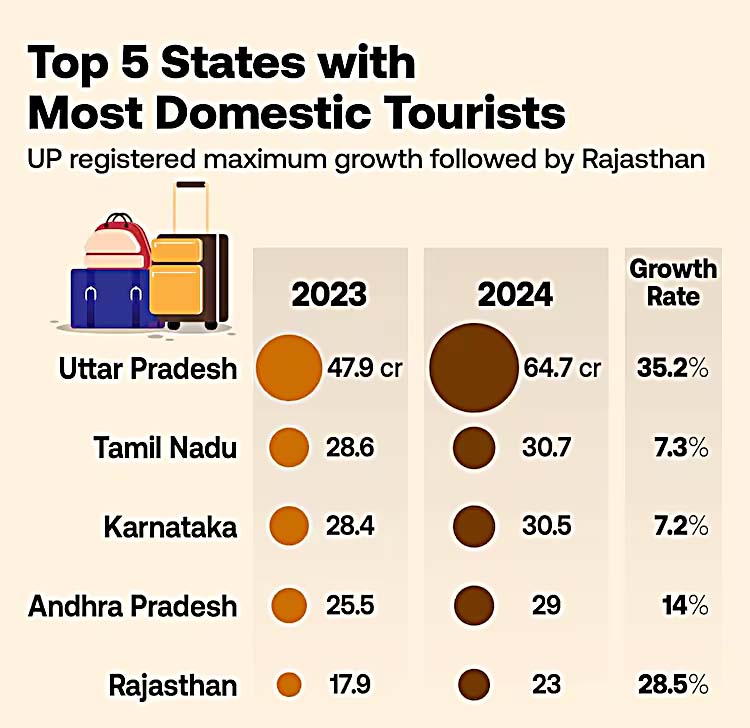 - વારાણસી: કાશી વિશ્વનાથ મંદિરમાં લાખો ભક્તો, ખાસ કરીને યુવાનો. ૨૦૨૫માં ૧૫૦ મિલિયન યાત્રાળુઓ આવ્યા હતા, આ વર્ષે નવા વર્ષ નિમિત્તે ભીડ ૧૦ ગણી વધારે.