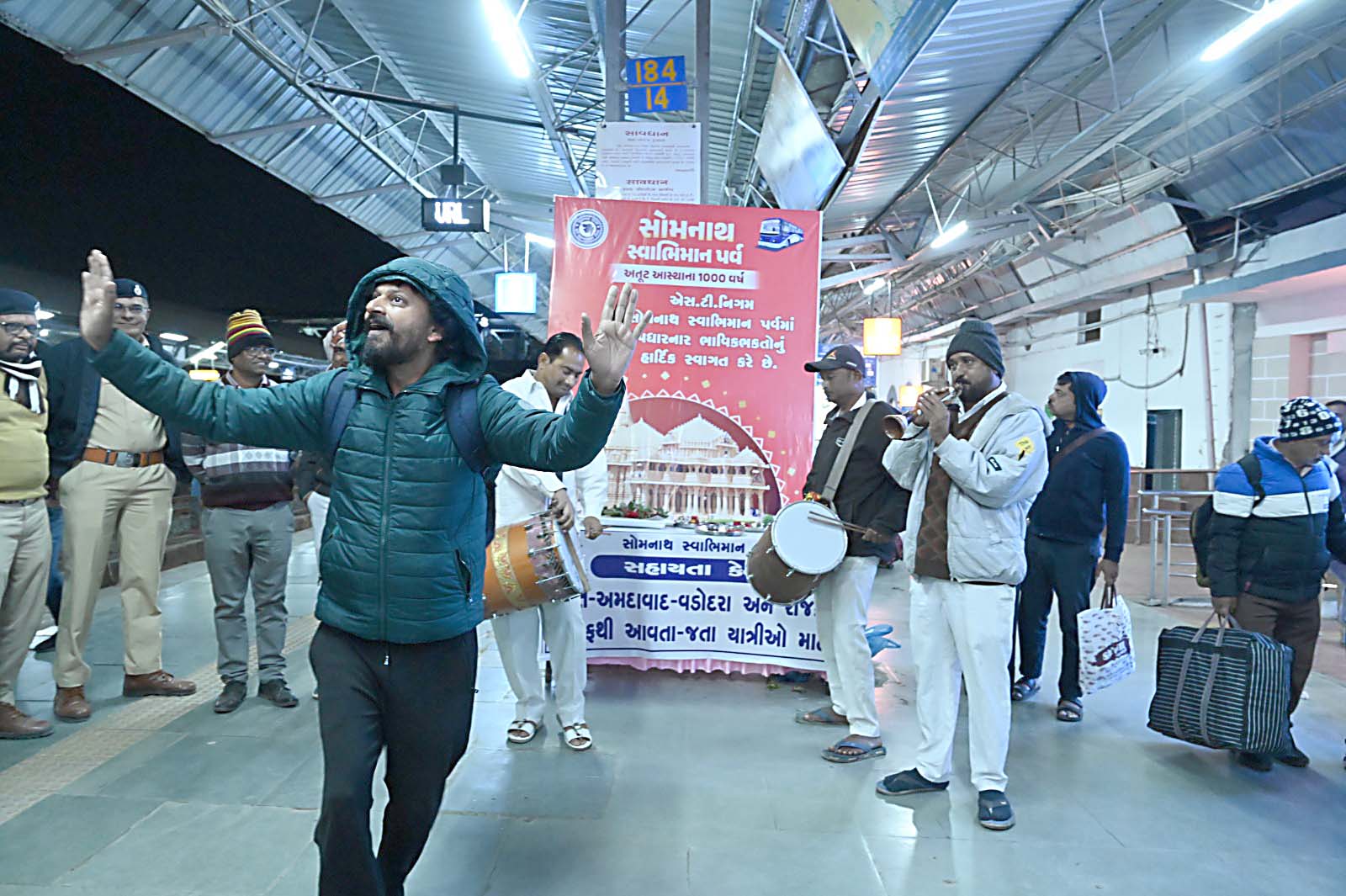 ૯ જાન્યુઆરીની ઊઘડતી ઉષાએ યાત્રાળુઓના ‘હર હર મહાદેવ – જય સોમનાથના નાદથી પ્રભાસ ભૂમિ પર વેરાવળ સ્ટેશન પરિસર ગુંજી ઉઠ્યું હતું. સ્ટેશથી મંદિર સુધી અને પરત ત્રણ સુધી જવા માટે ગુજરાત રાજ્ય માર્ગ પરિવહન નિગમ વિશેષ બસ વ્યવસ્થા કરવામાં આવી છે, જેના થકી રાજકોટ, સુરત, અમદાવાદ અને વડોદરાથી મોટી સંખ્યામાં શ્રદ્ધાળુઓ સોમનાથ દર્શન કરી શકે છે.