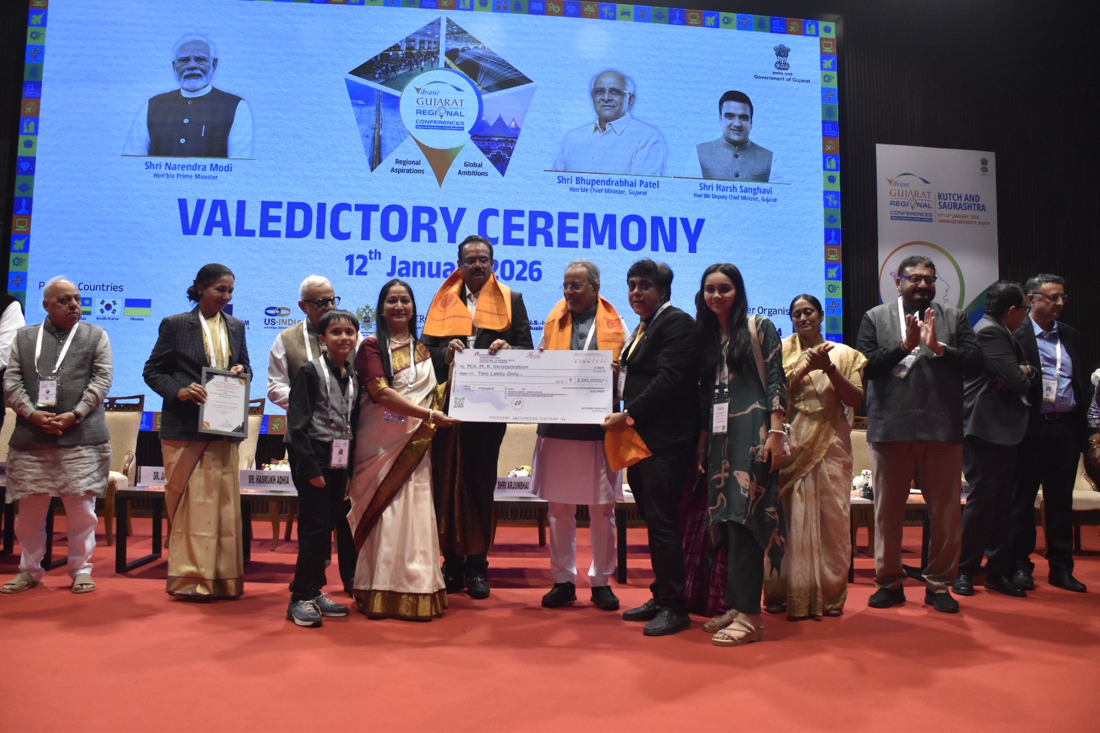 કાર્યક્રમમાં ઉપસ્થિત મહાનુભાવોના હસ્તે “Kutch  & Saurashtra : Anchoring Gujarat’s vision” પુસ્તકનું વિમોચન કરવામાં આવ્યું હતું. આ અવસરે ઉત્તમ પ્રદર્શન કરનારા વિવિધ એમ.એસ.એમ.ઈ.ના ઉદ્યોગકારો, હસ્તકલા કારીગરો, ઉદ્યોગ વિભાગનું પુરસ્કાર સાથે સન્માન કરવામાં આવ્યું હતું. જ્યારે મારવાડી યુનિવર્સિટીના સંચાલકોનું આભાર સાથે બહુમાન કરાયું હતું.