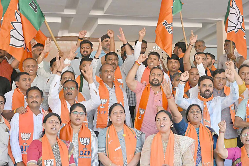 ગાંધીનગર સ્થિત કમલમ ખાતે ભાજપના કાર્યકરોએ મહારાષ્ટ્રના વિજયની ઉજવણી કરી હતી-મહારાષ્ટ્રની જનતાએ ફરી એકવાર સાબિત કર્યું છે કે – ભાજપ એટલે ભરોસો અને ભરોસો એટલે BJP.