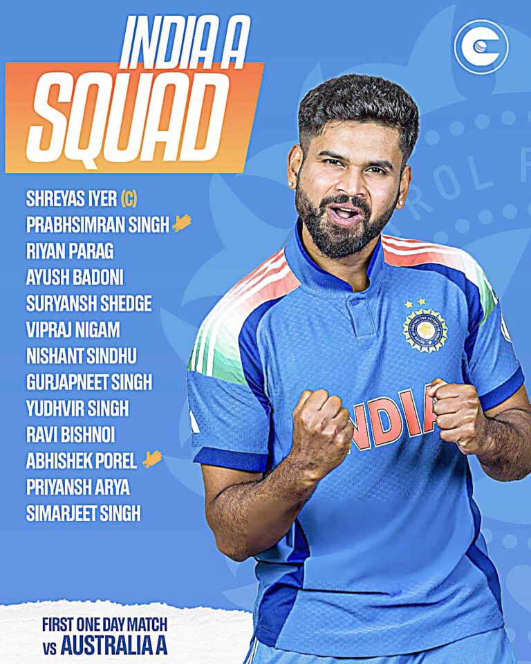 ઓસ્ટ્રેલિયા એ સામેની સિરીઝ માટે ટીમની જાહેરાત કરાઈ નવી દિલ્હી, ભારતીય ક્રિકેટ બોર્ડે ૩૦ સપ્ટેમ્બરથી શરૂ થનારી ઓસ્ટ્રેલિયા એ સામેની...