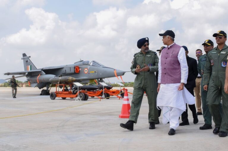 *રાજ્યપાલ શ્રી આચાર્ય દેવવ્રતજીએ ભુજ વાયુસેના ખાતે યોજાયેલ શસ્ત્ર પ્રદર્શનની મુલાકાત લીધી* *એરફોર્સ સ્ટેશન ભુજના એર કોમોડોર કે.પી.એસ. ધામાએ રાજ્યપાલશ્રીને...